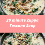 This 20 Minute Zuppa Toscana Soup is a hearty, creamy, and comforting Italian-inspired dish packed with spicy sausage, tender potatoes, and fresh kale in a rich, flavorful broth—perfect for busy weeknights.