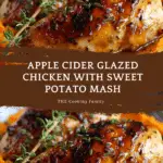 - Serve sweet potato mash on plates, top with glazed chicken, and drizzle with extra cider reduction. Garnish with fresh herbs if desired.