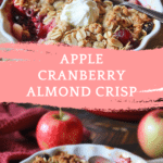 Apple Cranberry Almond Crisp is a cozy, delicious dessert with a spiced apple and cranberry filling, topped with a crunchy almond-oat topping. It’s easy to make, naturally gluten-free, and perfect for fall or any time you crave a warm, comforting treat.