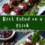 This Beet Salad on a Stick combines the deep, earthy flavor of roasted beets with the refreshing crunch of salad greens and the creaminess of cheese, creating a delightful mix of textures and flavors. The presentation on a skewer makes it easy to serve and eat, while also making it a great conversation starter at any event. The colorful combination of beets, greens, and cheese also adds a touch of elegance to your table, making it a perfect dish for both casual and formal gatherings. It’s healthy, fresh, and most importantly, fun to eat!