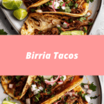 Birria Tacos are a popular Mexican dish made with tender, slow-cooked beef simmered in a rich chili-based broth. The shredded meat is stuffed into tortillas that are dipped in the flavorful broth and pan-fried until crispy. Served with a savory consommé for dipping, these tacos deliver bold spices, juicy beef, and irresistible texture in every bite.