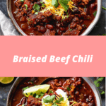 Braised Beef Chili delivers deep, slow-cooked flavor that makes every bite satisfying. Instead of using ground beef, this recipe uses chunks of beef that become incredibly tender as they braise in the chili sauce.