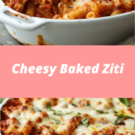 Cheesy Baked Ziti is a comforting casserole layered with tender pasta, rich tomato meat sauce, creamy ricotta, and gooey melted cheeses—perfect for family dinners, potlucks, or make-ahead meals.
