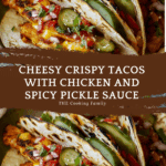 Cheesy Crispy Tacos with Chicken and Spicy Pickle Sauce are the perfect balance of bold flavors and irresistible textures. Quick to prepare and always satisfying, they’re great for weeknight dinners, casual get-togethers, or whenever you’re craving something cheesy and crispy with a punch of flavor. Try them once, and they’ll quickly earn a spot in your regular rotation.