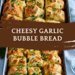Cheesy Garlic Bubble Bread is a pull-apart loaf made of soft dough balls infused with garlic butter and layered with melted cheese. It’s golden, gooey, and perfect for sharing as a side, appetizer, or snack.