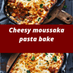 Cheesy Moussaka Pasta Bake combines the rich, spiced meat and creamy béchamel layers of traditional moussaka with the comfort of pasta for a hearty, Mediterranean-inspired meal.