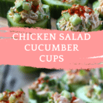 - Spoon a generous amount of chicken salad into each cucumber cup.