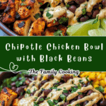 Chipotle Chicken Bowl with Black Beans is a Mexican-inspired, customizable meal featuring smoky chipotle-marinated chicken, hearty black beans, rice, and fresh toppings like avocado, tomatoes, and cilantro. Perfect for weeknights, meal prep, or a nourishing lunch.