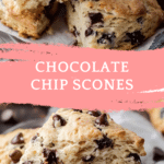 Chocolate Chip Scones are tender, buttery pastries filled with rich chocolate chips. Perfect for breakfast or an afternoon treat, they bake up golden on the outside and soft inside with melty chocolate in every bite.