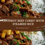 Coconut Beef Curry with Steamed Rice is a rich and hearty dish made with tender beef simmered in a fragrant coconut milk curry sauce, served over perfectly steamed rice. It’s comforting, flavorful, and perfect for weeknight dinners or entertaining guests.