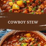 Cowboy Stew is the ultimate hearty comfort food—simple, satisfying, and bursting with flavor. With a rich blend of beef, sausage, beans, and vegetables, it’s a one-pot meal that feeds a crowd and warms you from the inside out. Whether you’re cooking it at home or over a campfire, this classic stew is sure to become a go-to favorite for family dinners and cozy nights in.