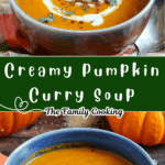 A rich and comforting creamy pumpkin curry soup with a blend of savory, sweet, and spiced flavors, perfect for chilly days.