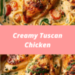 Creamy Tuscan Chicken is a rich, satisfying dish that delivers gourmet flavor with simple ingredients. With its sun-dried tomato cream sauce and tender seared chicken, it’s a comforting yet elegant meal that comes together in one pan. Whether you’re cooking for guests or treating yourself, this easy recipe is bound to impress and become a new favorite in your dinner rotation.