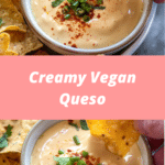 A rich and creamy vegan queso made with wholesome ingredients, perfect for dipping or drizzling over your favorite dishes.