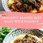Crockpot Braised Beef Ragu with Polenta is a rich, slow-cooked comfort dish featuring tender shredded beef simmered in a savory tomato and herb sauce, served over creamy, buttery polenta. This hearty meal is both rustic and elegant, perfect for cozy dinners or entertaining.