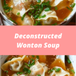 Deconstructed Wonton Soup is a quick and comforting dish that captures the classic flavors of traditional wonton soup in a simpler form. With savory broth, seasoned meat, and tender vegetables, it’s a warm and satisfying meal that’s easy to prepare. Perfect for busy days or cozy evenings, this recipe delivers delicious flavor without the extra steps.