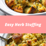 Easy herb stuffing is a warm and savory side dish made with seasoned bread, aromatic vegetables, and fresh herbs for a comforting classic.