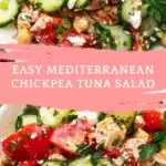 A quick, protein-packed Mediterranean salad made with chickpeas, tuna, fresh vegetables, and herbs, tossed in a zesty lemon and olive oil dressing. Perfect for lunch, light dinner, or meal prep.