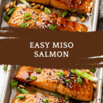 Easy Miso Salmon is a Japanese-inspired dish featuring tender, flaky salmon fillets glazed in a savory-sweet miso marinade. The miso, soy sauce, and honey blend creates a rich umami flavor with a caramelized finish — perfect for a quick, healthy, and elegant meal.