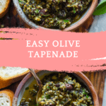 This Easy Olive Tapenade is a bold and savory Mediterranean spread made with olives, capers, garlic, and olive oil. Perfect as a dip, spread, or condiment, it comes together quickly in a food processor and is naturally vegan and gluten-free.