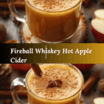 Fireball Whiskey Hot Apple Cider is a warm, cinnamon-spiced cocktail that combines sweet apple cider with the fiery kick of Fireball whiskey. Perfect for chilly evenings or festive gatherings, it’s a cozy drink that blends sweetness, spice, and a touch of whiskey heat in every sip.