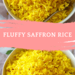 Fluffy saffron rice infused with warm aromatic flavors and a golden hue, perfect as a fragrant side dish for any meal.