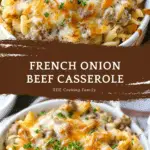 French Onion Beef Casserole is a rich, creamy, and comforting baked dish featuring ground beef, egg noodles, and a savory French onion sauce. Topped with melted cheese and crispy fried onions, it’s the ultimate cozy meal for family dinners or potlucks.