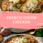 French Onion Chicken is a one-skillet dinner featuring juicy seared chicken breasts, caramelized onions, and melted cheese in a savory broth sauce inspired by French onion soup. Rich, comforting, and full of deep flavor.
