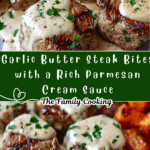 Garlic Butter Steak Bites with a Rich Parmesan Cream Sauce is a luxurious yet easy-to-make meal that’s bursting with flavor. The combination of juicy steak, aromatic garlic butter, and creamy parmesan sauce makes it a standout dish for both casual dinners and special occasions. Serve it with your favorite sides, and prepare for clean plates all around.