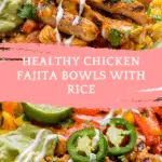 Healthy Chicken Fajita Bowls with Rice are a quick, vibrant, and satisfying meal featuring seasoned chicken, sautéed peppers and onions, and rice, topped with fresh garnishes like avocado or Greek yogurt. Perfect for lunch, dinner, or meal prep.