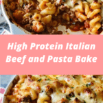 High Protein Italian Beef and Pasta Bake is a hearty casserole made with seasoned ground beef, high-protein pasta, rich tomato sauce, and melted cheese. Packed with bold Italian flavors and satisfying protein, it’s perfect for family dinners or meal prep.