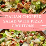 A bold and satisfying Italian chopped salad loaded with crisp vegetables, savory meats, and creamy cheeses, topped with warm, cheesy pizza-inspired croutons for extra crunch and flavor.