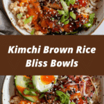 Kimchi Brown Rice Bliss Bowls are a delicious harmony of flavor, color, and nutrition. With hearty brown rice, spicy kimchi, and a mix of crisp veggies and savory sauce, this bowl is both comforting and refreshing. Perfect for meal prep or a quick weeknight dinner, it brings together the best of wholesome ingredients and bold Korean-inspired taste for a truly blissful meal experience.