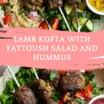 Lamb Kofta with Fattoush Salad and Hummus is a vibrant Mediterranean-inspired dish featuring juicy spiced lamb, a crisp vegetable salad with toasted pita, and creamy hummus. This balanced meal combines bold herbs, warm spices, and fresh ingredients for a satisfying and flavorful plate.
