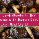 Lamb Shanks in Red Wine with Rustic Root Vegetables is a rich and hearty braised dish featuring tender lamb shanks cooked low and slow in a red wine sauce with earthy root vegetables—perfect for cozy dinners or special occasions.