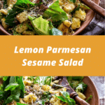 This lemon parmesan sesame salad is a fresh and vibrant dish with crisp greens, a tangy lemon dressing, nutty sesame seeds, and savory parmesan.