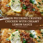 Lemon Pecorino Crusted Chicken with Creamy Lemon Sauce is a crispy, savory dish featuring juicy chicken breasts coated in a Pecorino-panko crust and finished with a rich, tangy lemon cream sauce.