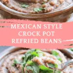 Creamy, flavorful Mexican-style refried beans slow-cooked in a crock pot, perfect as a side for tacos, burritos, or as a dip.