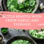 Nettle Risotto with Green Garlic and Taleggio is a creamy, earthy dish featuring tender arborio rice, fresh nettles, and aromatic green garlic finished with rich, melty Taleggio cheese.
