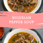 Nigerian Pepper Soup is a hot, spicy, and aromatic broth made with goat meat, chicken, or fish and infused with traditional West African spices. It’s comforting, flavorful, and commonly served during cold weather or for its soothing, healing properties.