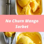 A refreshing, tropical no-churn sorbet made from ripe mangoes, lime juice, and a simple syrup, delivering smooth, icy, and naturally fruity flavor without an ice cream maker.