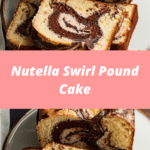 Nutella Swirl Pound Cake is a rich and buttery vanilla cake marbled with ribbons of chocolate-hazelnut spread, creating a moist, tender crumb and beautiful swirled slices.