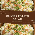 Olivier Potato Salad, also known as Russian Salad, is a creamy, hearty dish made with diced potatoes, carrots, peas, eggs, pickles, and optionally meat. It’s a festive, satisfying salad popular in Eastern European cuisine, perfect for gatherings and holidays.