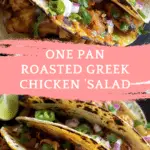 One Pan Roasted Greek Chicken Salad is a vibrant Mediterranean-inspired dish featuring juicy lemon-garlic chicken, roasted vegetables, briny olives, and creamy feta layered over fresh romaine and cucumber.