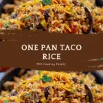 This One Pan Taco Rice is a quick and easy skillet meal that brings together taco flavors, seasoned beef, rice, beans, corn, and melty cheese in a single pan. Perfect for busy weeknights or meal prep.