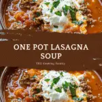 A cozy, hearty soup that captures all the flavors of classic lasagna—One Pot Lasagna Soup combines beef, noodles, tomatoes, herbs, and cheese in a simple one-pot meal perfect for weeknights.