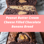 Peanut Butter Cream Cheese Filled Chocolate Banana Bread is a rich and indulgent twist on classic banana bread, featuring moist chocolate banana batter layered with a creamy peanut butter cheesecake-style filling. Perfect for dessert, brunch, or a special treat.