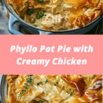 Phyllo Pot Pie with Creamy Chicken is a comforting yet elegant dish featuring a rich, creamy chicken and vegetable filling topped with crisp, flaky layers of golden phyllo.