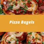Crispy bagel halves topped with savory pizza sauce, melted mozzarella, and classic toppings for a quick and satisfying meal or snack.