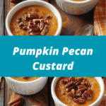 This Pumpkin Pecan Custard combines creamy spiced pumpkin custard with a crunchy pecan streusel topping. A lighter, crustless alternative to pumpkin pie, it’s rich, cozy, and perfect for fall gatherings or an elegant make-ahead dessert.